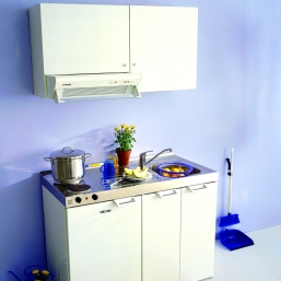 S-au creat module in care, intr-un spatiu restrans, asemanator cu un mic dulap, se pot regasi toate accesoriile, de la chiuveta la plita de gatit si frigider, toate in dimensiuni ajustate si cu un design care permite plasarea acestor corpuri si in alte camere, cum ar fi sufrageria.