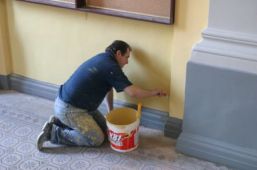 „Cu ajutorul unui şpaclu sau cu un obiect metalic triunghiular se curăţă bine crăpăturile, lărgindu-se puţin. În acest fel, chitul şi gletul vor face o priză mai bună. Se netezeşte apoi suprafaţa respectivă cu şmirghel, după care se periază cu o pensulă. Crăpăturile mai mari se umplu cu chit, iar fisurile se acoperă direct cu o bandă de fibră de sticlă. Aceasta conferă rezistenţă, pentru a evita ulterior o nouă fisurare“, explică meşterul Marcel Constantin.