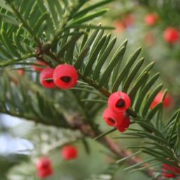 > Tisa (Taxus baccata). Chiar daca necunoscatorii o confunda uneori cu bradul, o poti recunoaste usor datorita fructelor sale rosii, foarte decorative. Trebuie sa stii inainte de a planta in gradina acest arbust ca, desi atragator, fructele contin seminte toxice. Desi creste foarte incet, poate atinge dimensiuni impresionante.